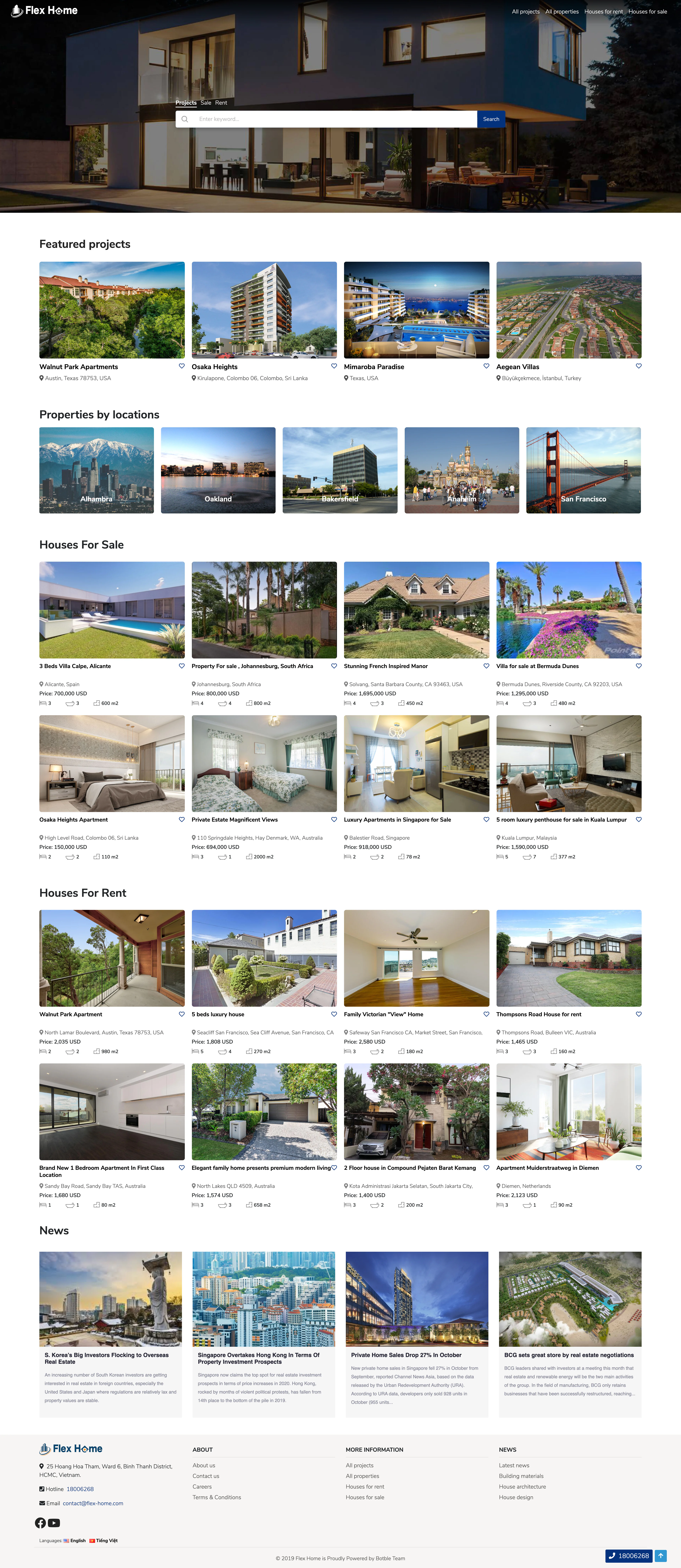 - Modules for pages, blogs, menus, contacts, and real estate are provided using components to eliminate boilerplate code.