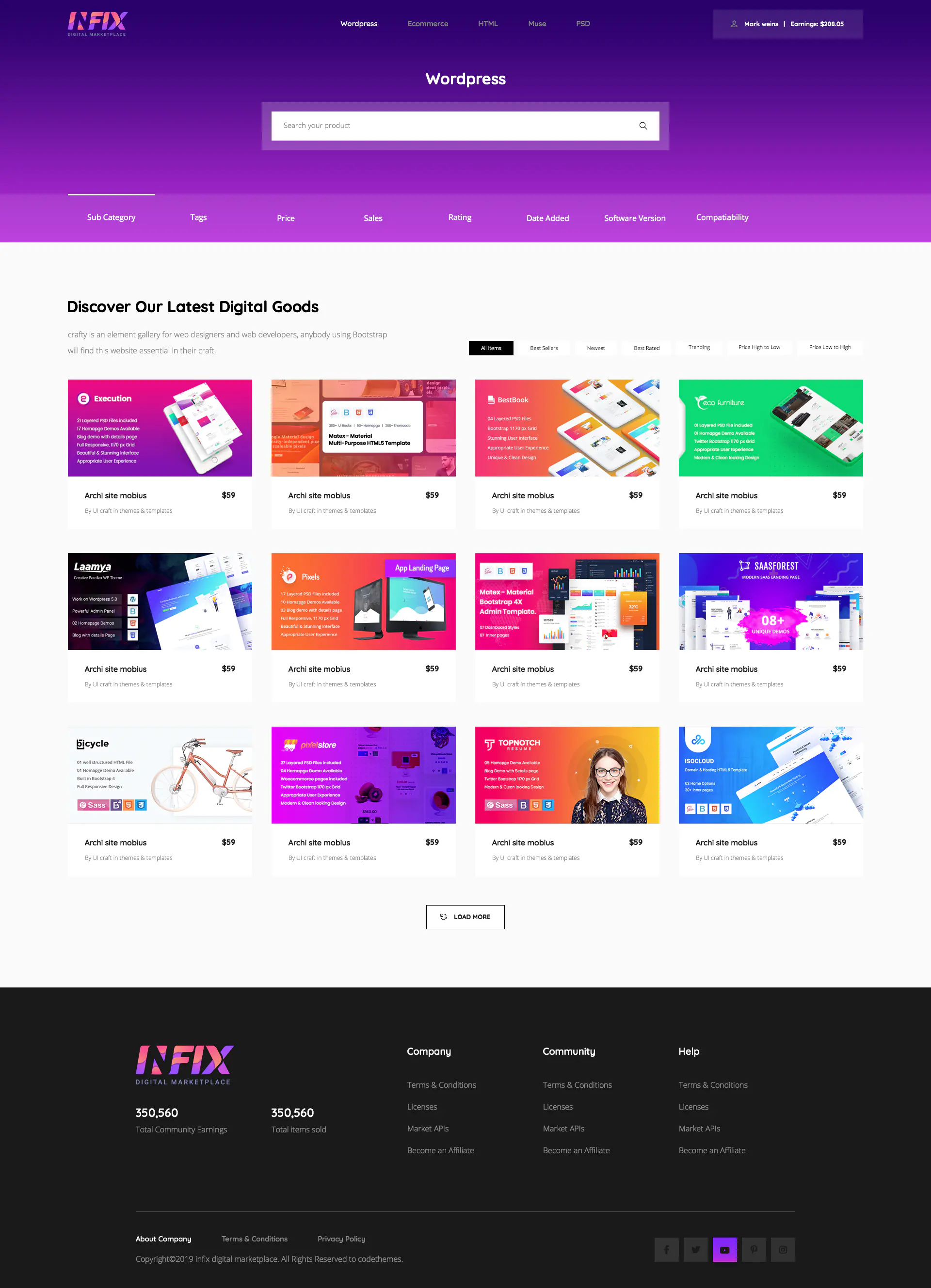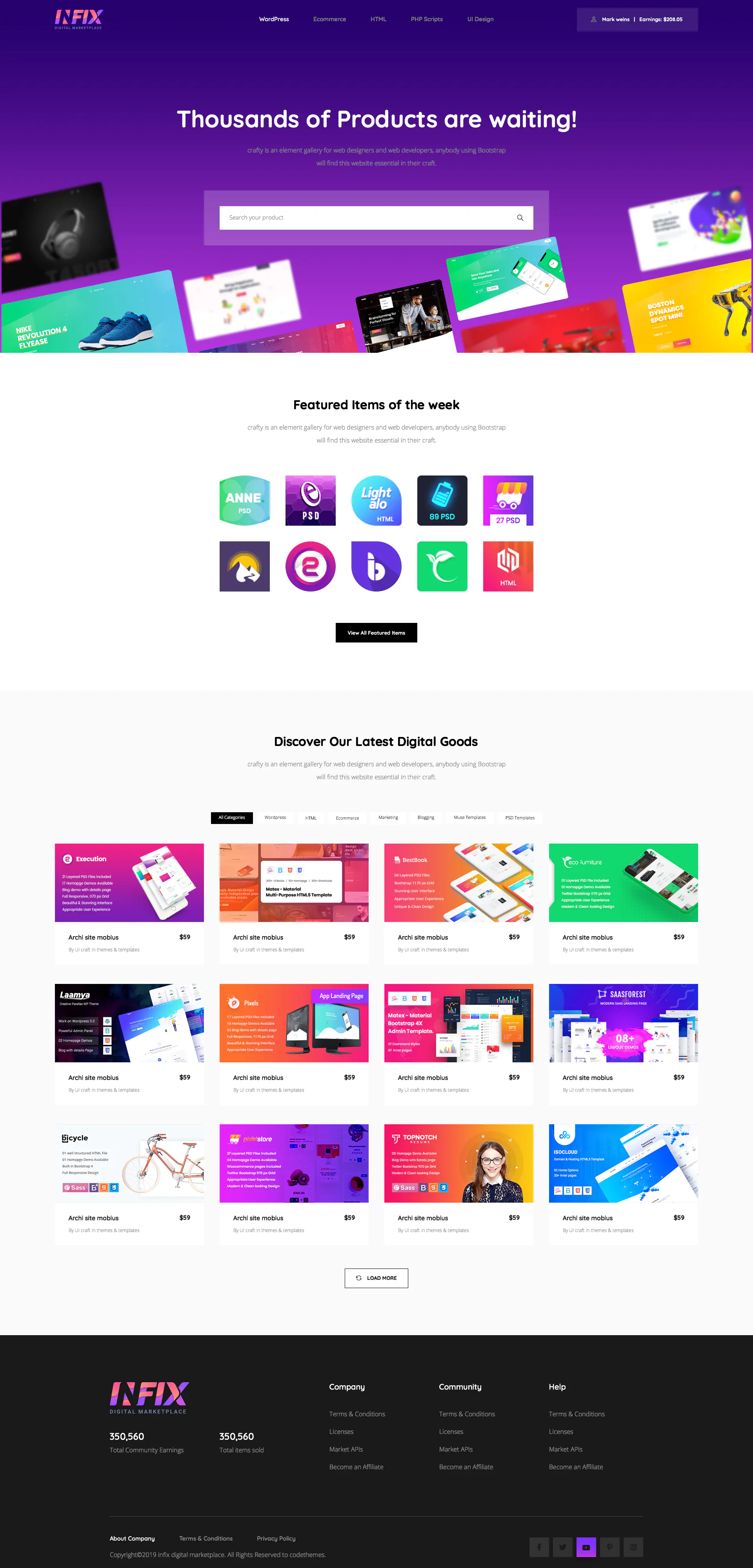 InfixHub script you can sell your projects without resellers’ commission taking half the cost of your project. All profits just for you just need to install the script and add your products. Or you can set your marketplace and accept any user to upload their products and get the selling commission