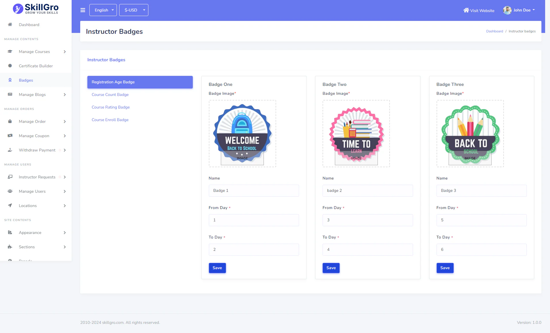 - Instructor badge management